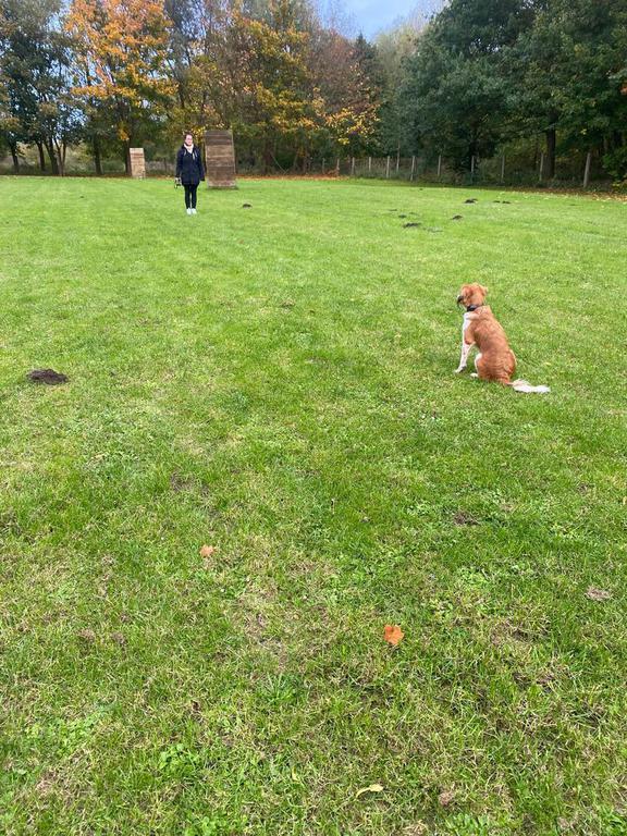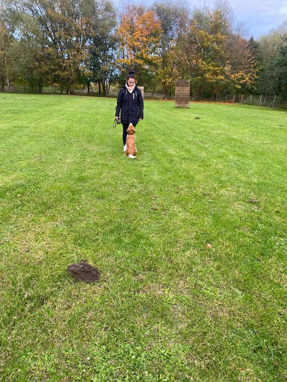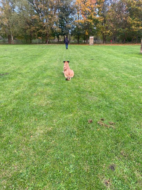 Wir sind um 7.45 auf dem Acker gestartet. Dort wurden erstmal die 5 Fährten gelegt. Nach kurzer Wartezeit durfte Janine mit ihrer Caja die erste Fährte des Tages, der IGP1 absuchen und erhielt dafür